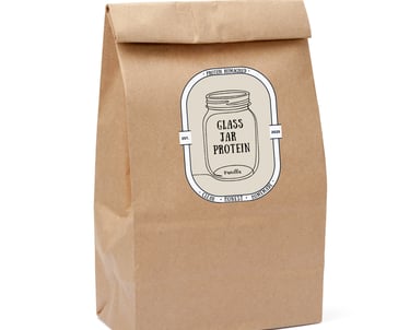 Provides everything you need at one click. Microplastic free packaging jar and spoon, along with our yummy protein powder!