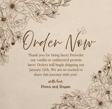 This product was born from a mother and daughter's health journey. This protein was created for sensitive bodies that deserve better. Hand-made batches. Clean ingredients. Gluten free. Dairy free. No sucralose. No maltodextrin. Microplastic free. No shortcuts.